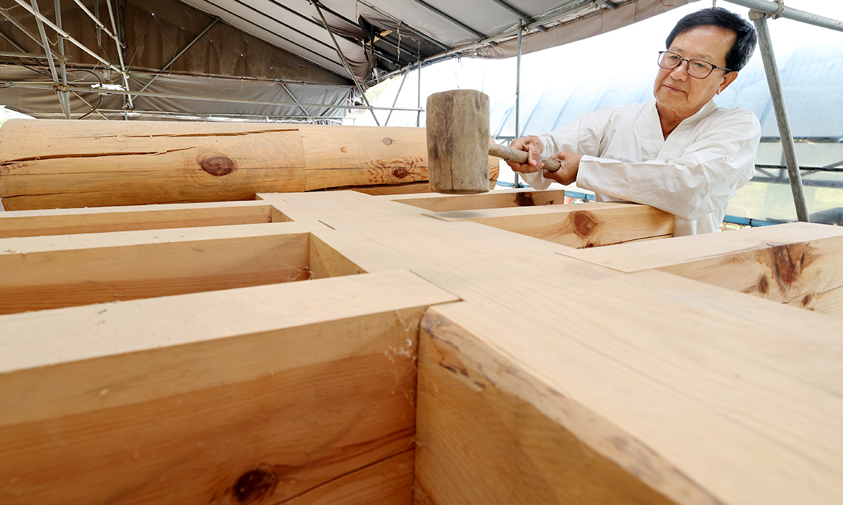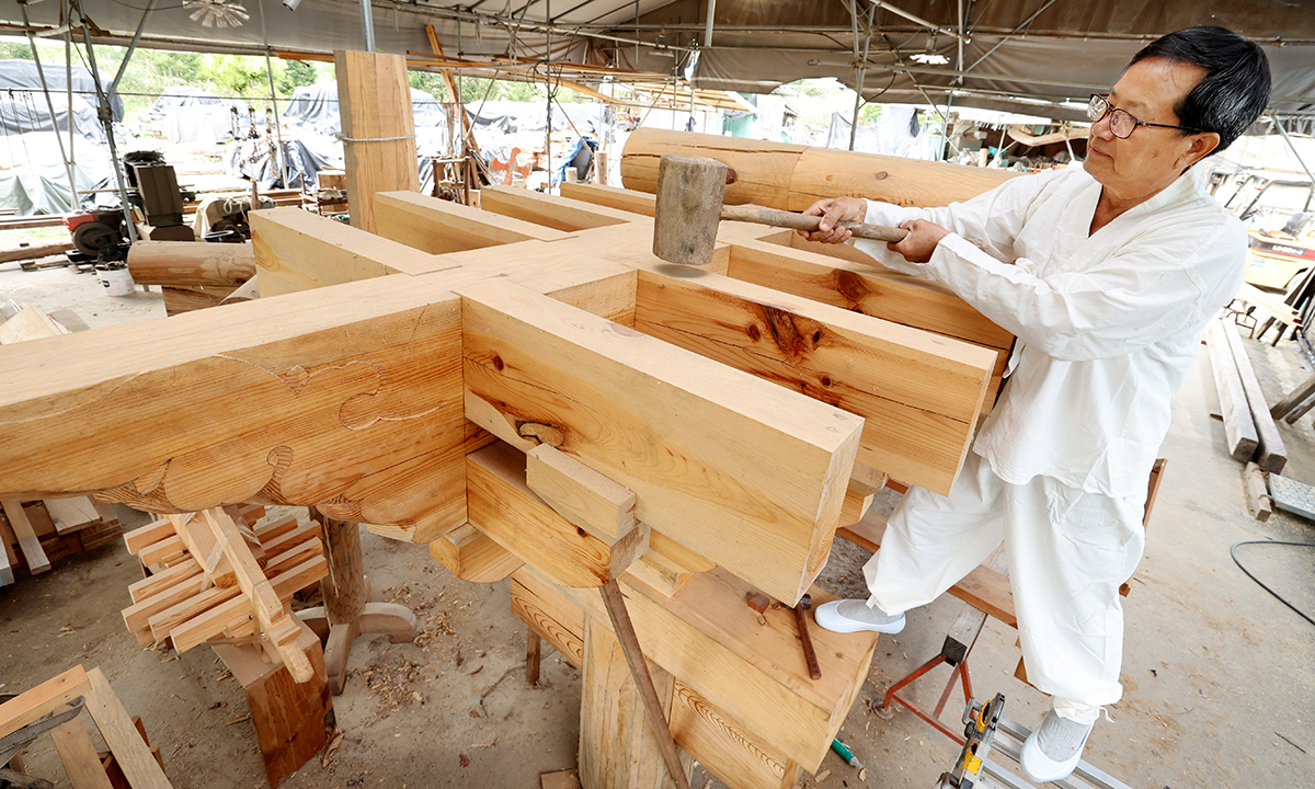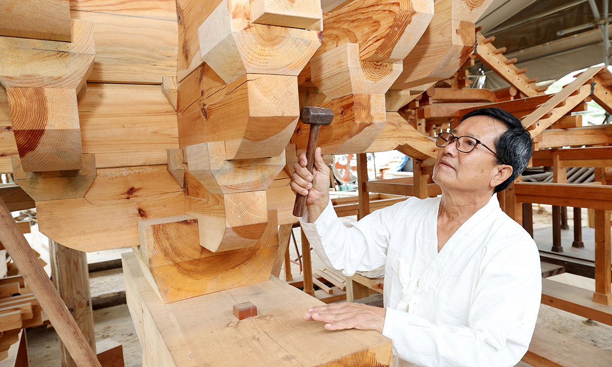 “우리 전통 방식의 건축물이 후대에 이어지는 데 내가 가진 기술을 전수하는 것이 제 역할이고 사명이죠. 착실한 이수자 5명이 열심히 배우고 있어 든든해요.” 점심시간이 훌쩍 지나 오전 작업을 마친 대목장이 옷에 붙은 나무 먼지를 손으로 털어내며 환한 미소를 짓는다.