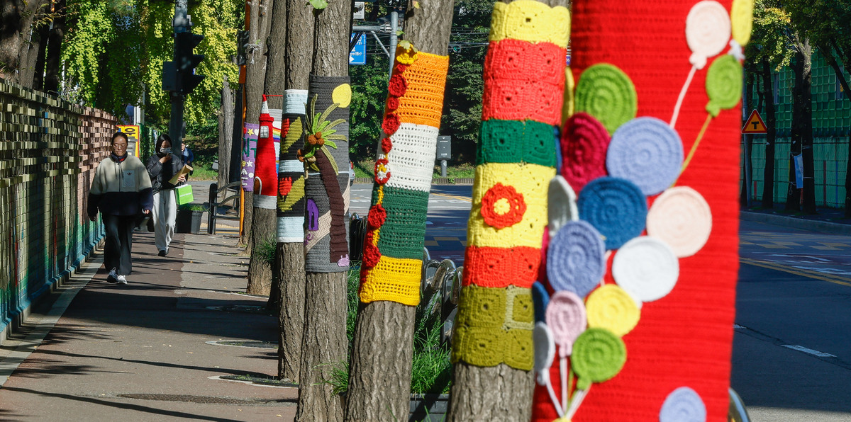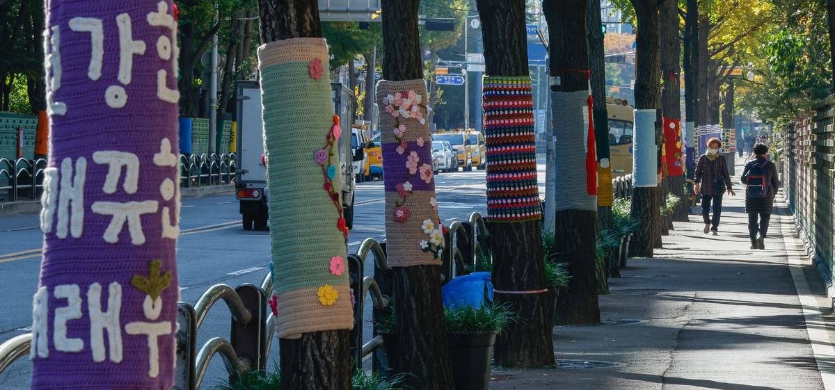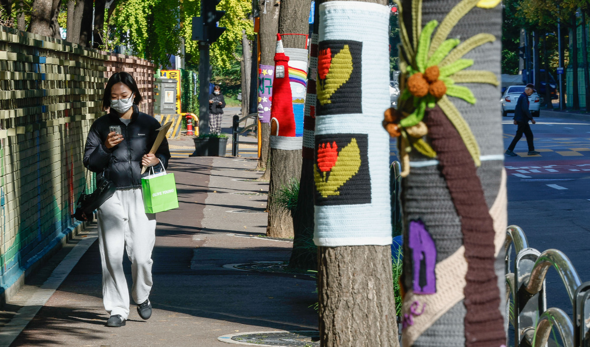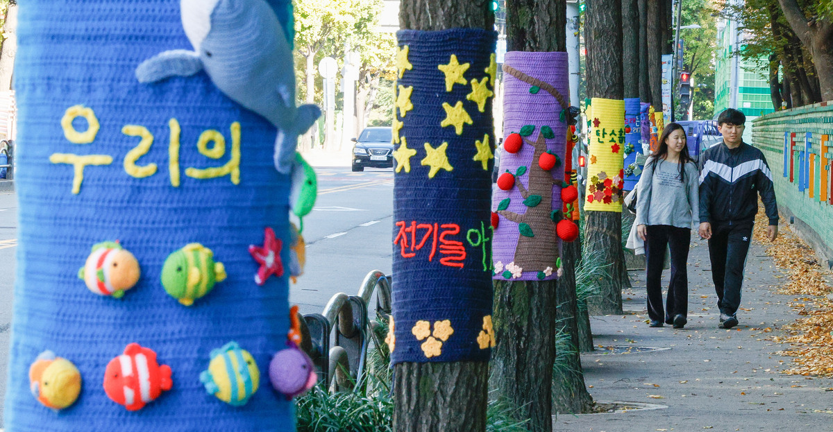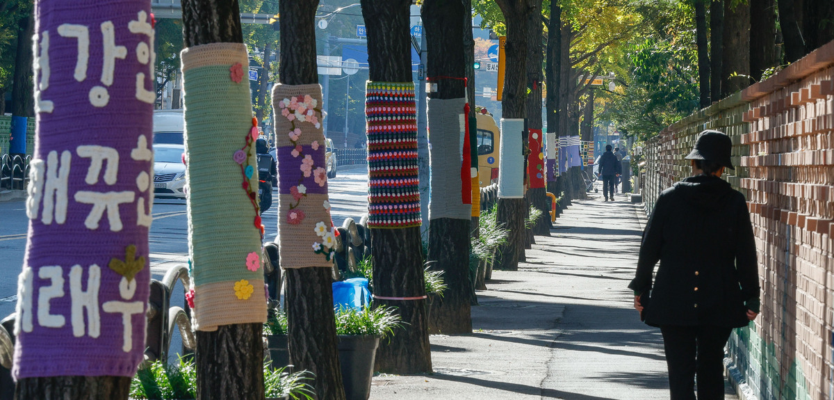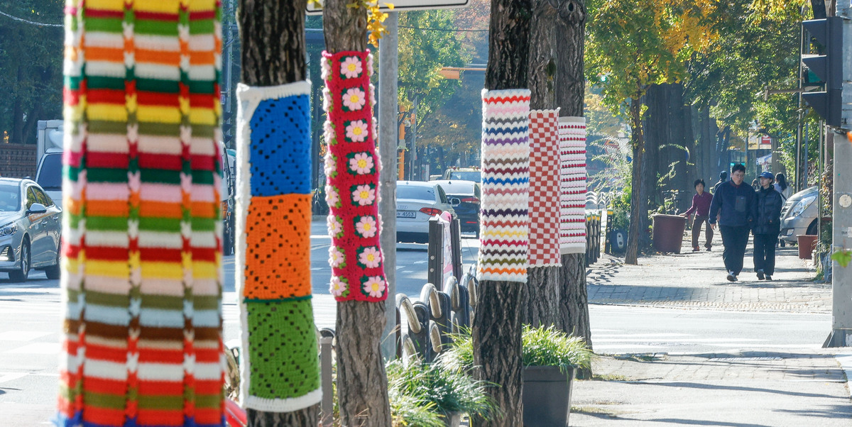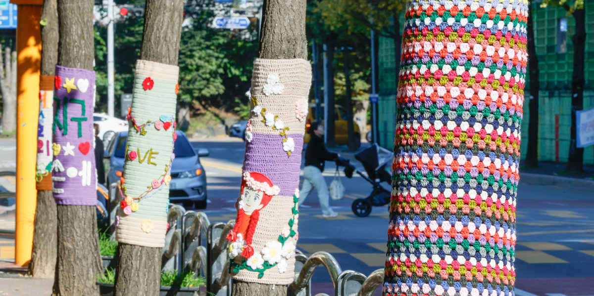 '나무야 춥지마' 뜨개옷 입은 나무들 [한강로 사진관]