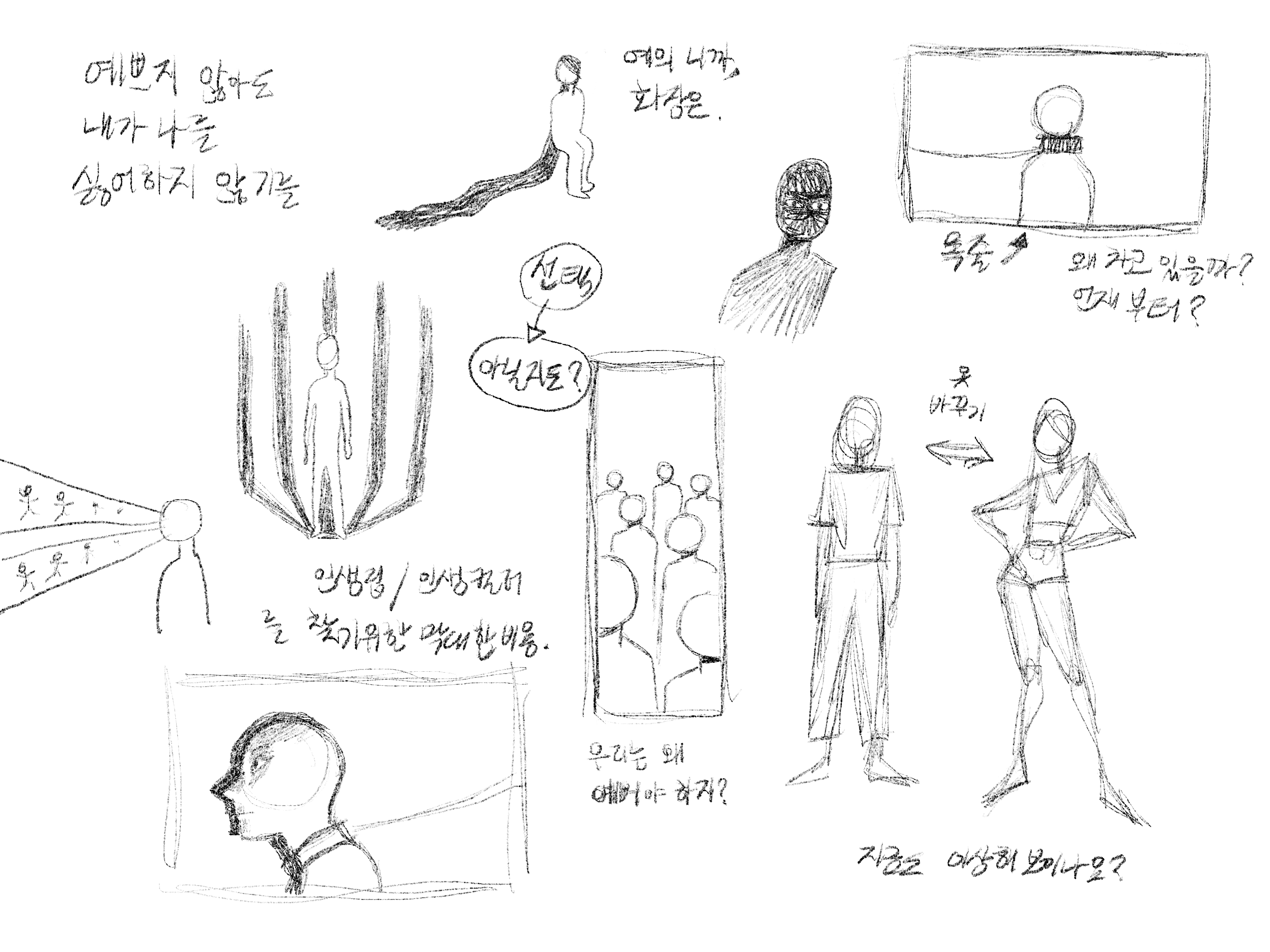 이 작품을 관통하는 상징인 ‘목줄’은 최 감독이 탈코르셋을 처음 접하던 시기에 본 페미니즘 만화인 ‘애완 인간’, 코르셋 끈을 끊어내는 장면이 나오는 ‘탈코일기’ 등에서 영감을 받았다. 여성들이 목줄을 잘라내는 것을 망설이는 이유에 대해 최 감독은 “변화는 항상 불편함을 동반한다는 뇌과학 관련 글을 본 기억이 있다”며 “반복된 패턴을 깨면 뇌는 불편함을 느끼니 대부분 편안한 길에 안주하려 한다”고 설명했다. 이 작품을 통해 그 길이 ‘정답’이 아닐 수 있다는 생각, 다른 선택도 가능하다는 것을 보여주고 싶었다고 그는 덧붙였다.