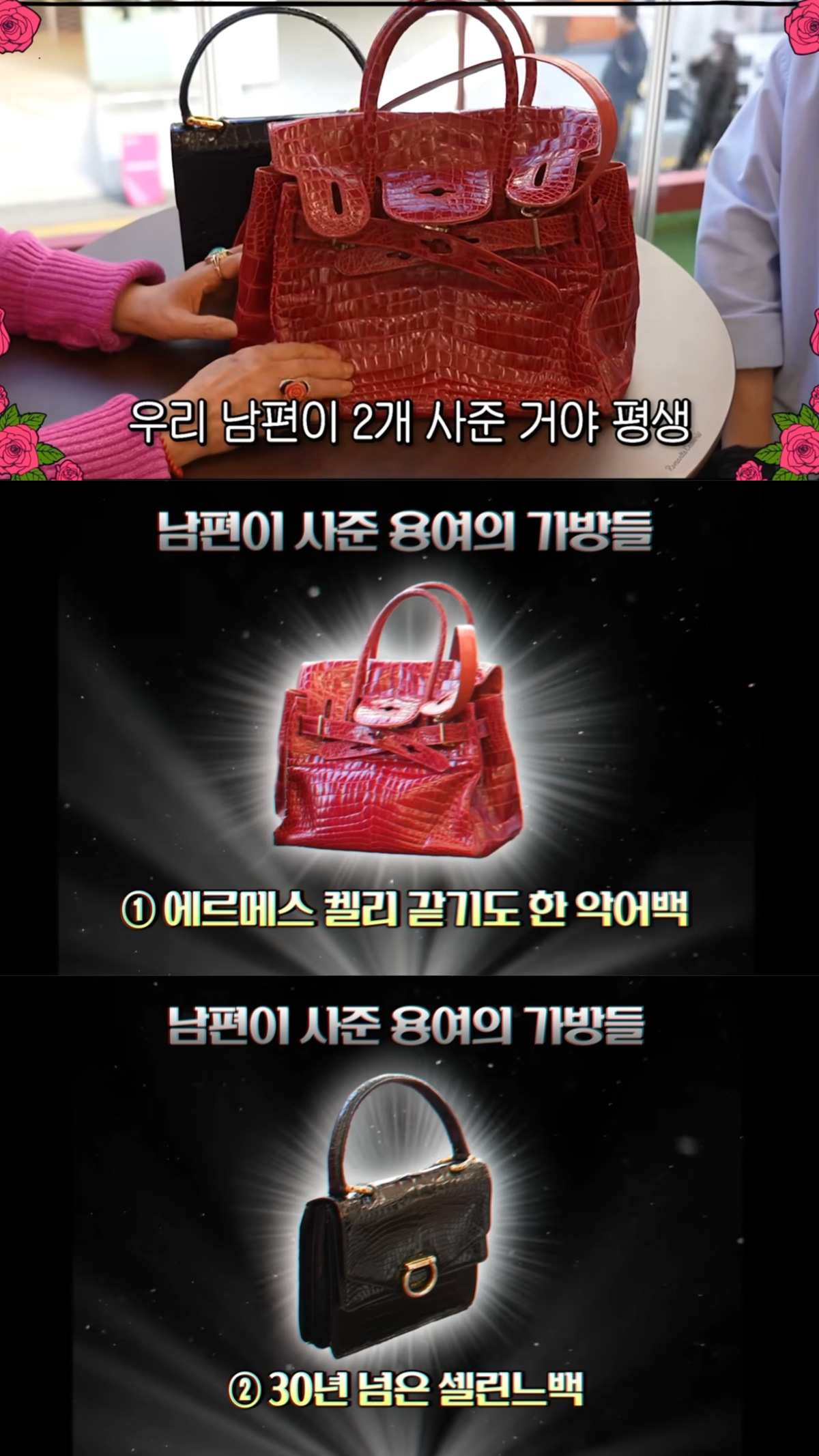 30년 넘게 사용한 셀린느 백을 두고 감정사는 “정품은 맞지만, 연식이 오래됐고 상태가 좋지 않아 감정가는 약 10만원 정도”라고 말했다. 빨간색 악어가죽 가방에 대해서는 “처음 보는 브랜드”라면서 “진짜 악어가죽이 맞지만 브랜드가 따로 없는 그냥 일반 가방이라 감정 불가”라고 말했다.