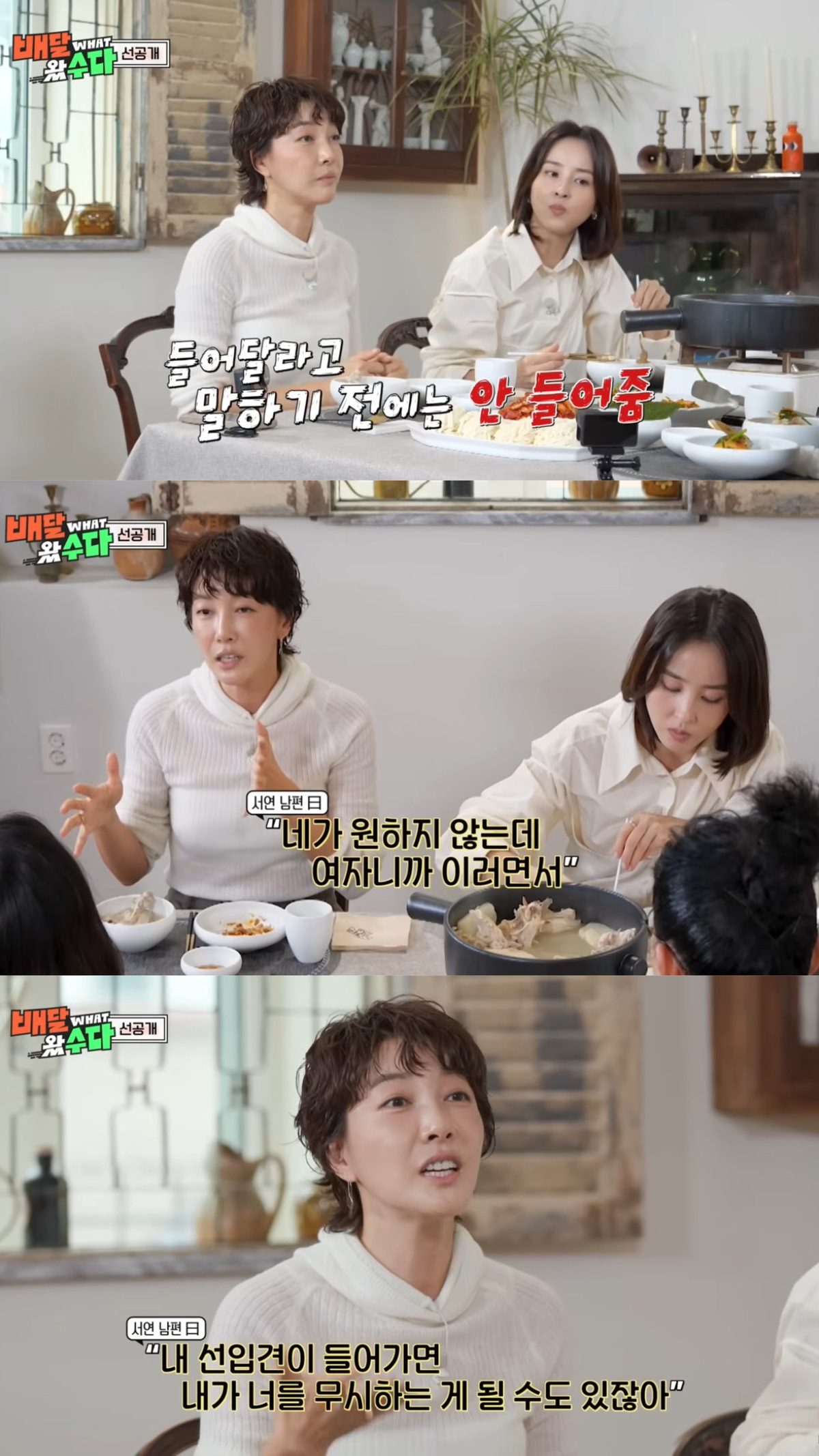 이영자가 “그건 무심한 사람”이라고 말하자, 결코 평범하지 않은 진서연의 남편에 대한 이야기가 이어졌다. 진서연은 남편이 “네가 원하지 않는데, ‘여자니까’ 이러면서 내 선입견이 들어가면 내가 너를 무시하는 게 될 수도 있잖아”라고 말했다고 밝혔다.