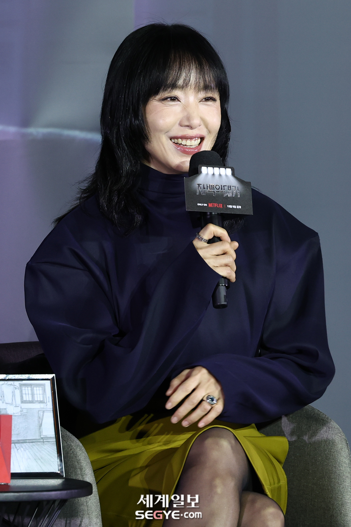 배우 전도연이 3일 용산 CGV에서 열린 넷플릭스 시리즈 ’자백의 대가’ 언론시사회에 참석해 인사말을 하고 있다.